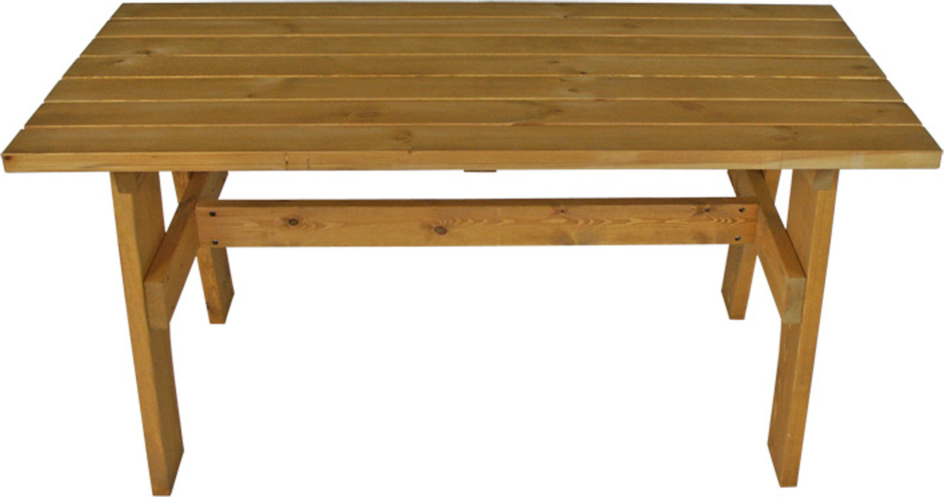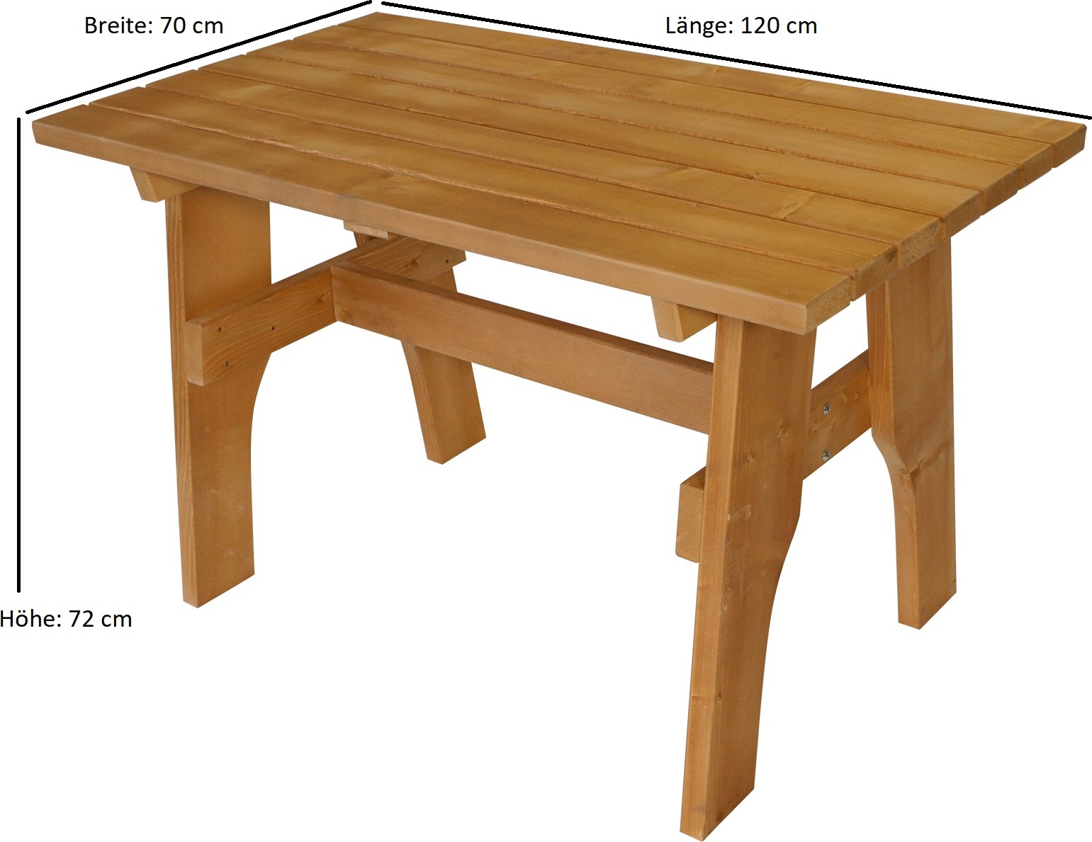 Die Garnitur besteht aus einem 3-sitzigen Bank, zwei Stühlen und einem rechteckigen Tisch. Mit den Maßen von 150 cm x 70 cm ist der Tisch großzügig bemessen für alle Anlässe.